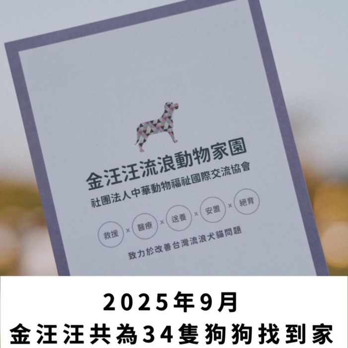 2025年9月共為34隻狗狗 找到溫暖的家